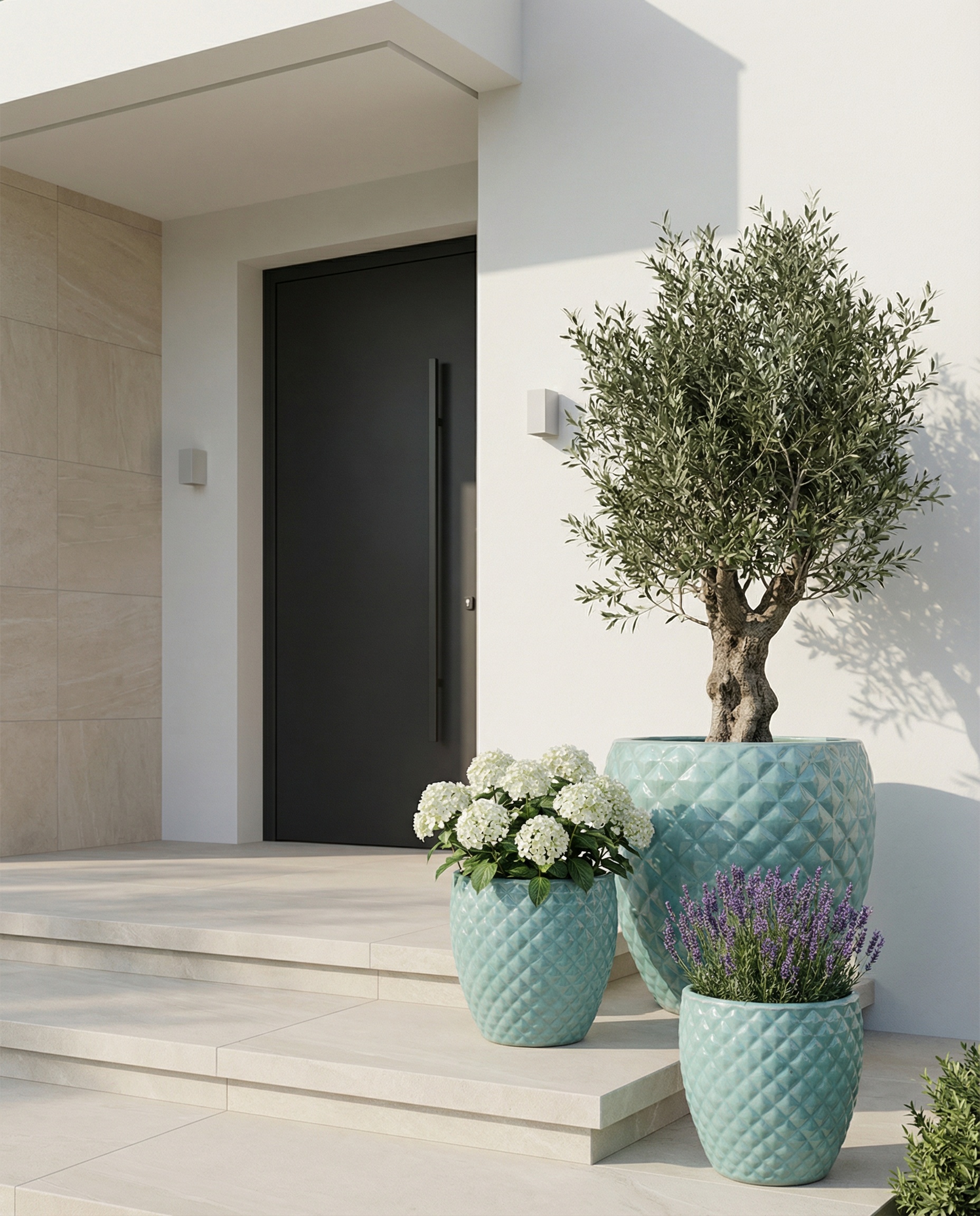 Donica Azura Diamond została wykonana z wysokiej jakości ceramiki, odpornej na działanie warunków atmosferycznych. Solidna konstrukcja oraz mrozoodporność sprawiają, że doskonale sprawdzi się zarówno we wnętrzach, jak i w aranżacjach zewnętrznych – na tarasach, balkonach oraz w ogrodach. Jej duże rozmiary umożliwiają sadzenie okazałych roślin, krzewów oraz drzewek, czyniąc ją idealnym wyborem do reprezentacyjnych przestrzeni.