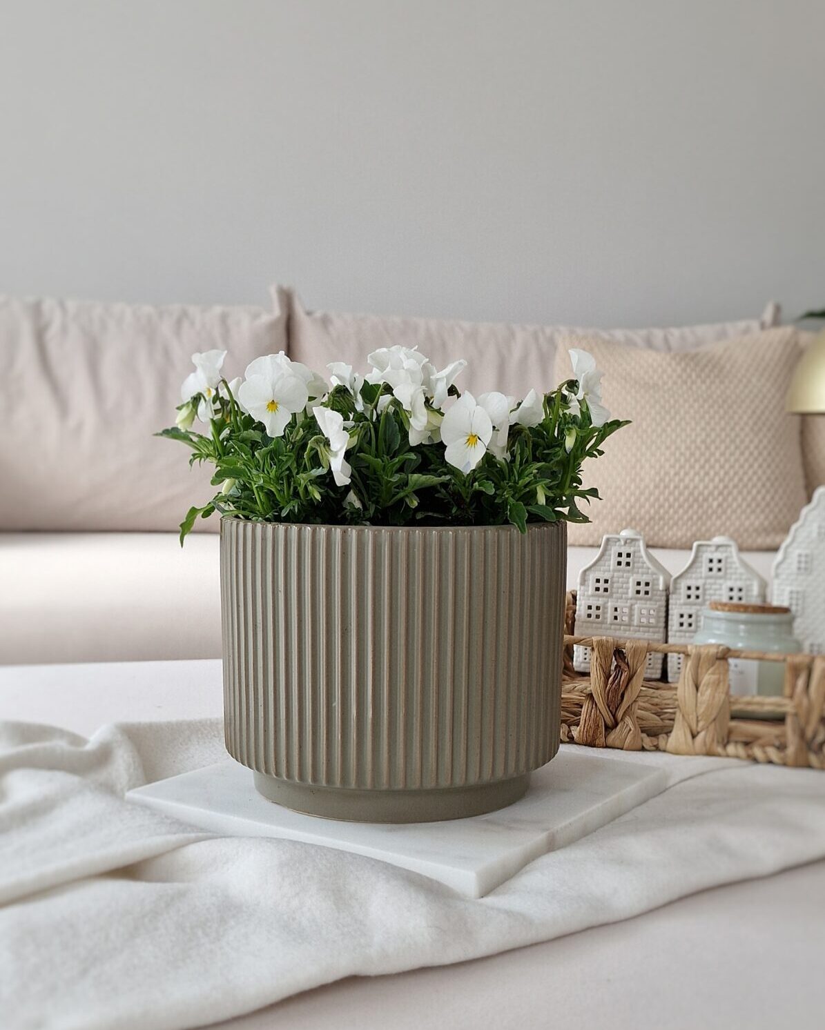 Oliwkowe doniczki ceramiczne ryflowane – bestseller wśród doniczek