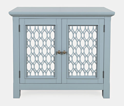 Komoda szaroniebieska 96,5 cm jest wprost stworzona do skandynawskiego wnętrza, ale nie tylko. Zachwyci w każdym pomieszczeniu, gdzie chcesz wprowadzić atmosferę pełną spokoju i zaaranżować harmonijne wnętrze bliskie natury. Ta komoda łączy w sobie funkcjonalność i szyk. Lustrzane drzwi ozdobione szprosami dodają jej elegancji, a przez ten wzór aż trudno oderwać wzrok. Dbałość o detale jest widoczna na każdym kroku, od gładkiego wykończenia, przez dobór materiałów, aż po doskonale dobrane uchwyty. Warto podkreślić, że do wykonania komody posłużył naturalny surowiec – drewno akacji. Ten rodzaj drewna wyróżnia się trwałością i odpornością. Komoda bez wątpienia będzie zachwycać niezależnie od mijającego czasu i użytkowania. Możesz ją z łatwością dopasować do swoich potrzeb, ponieważ wysokość półek wewnątrz możesz dopasować samodzielnie. Stwórz wyjątkową aranżację i wybierz szaroniebieską komodę.