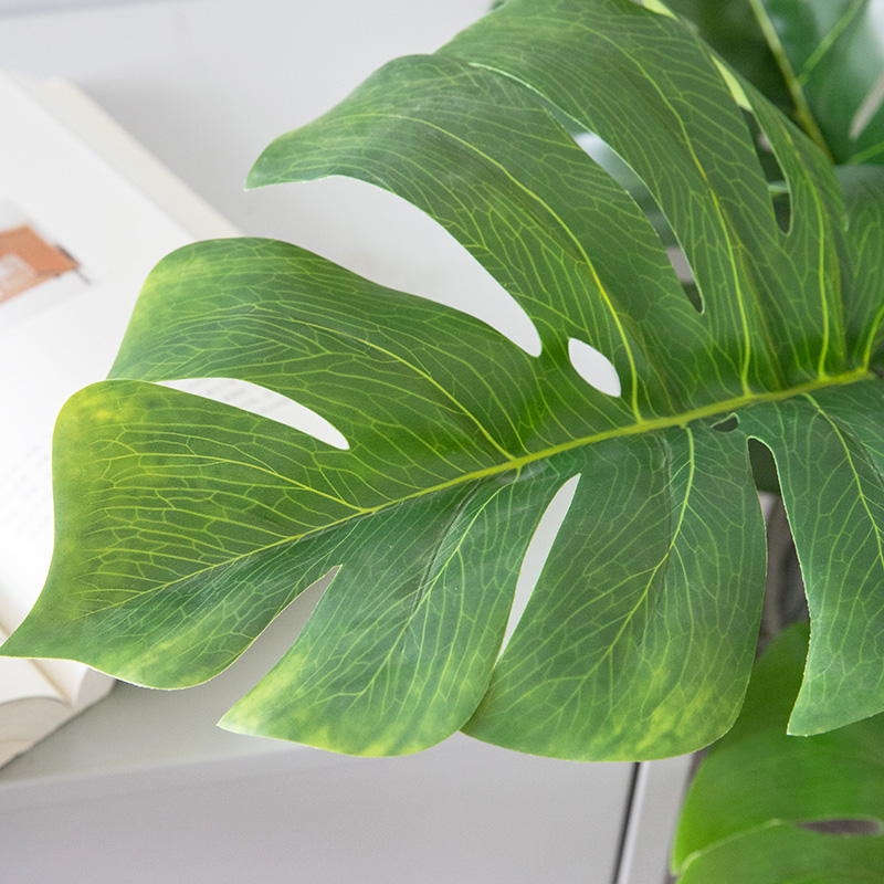 Sztuczna monstera o wys. 60 cm została stworzony z dbałością o każdy detal. Jej liście są mięsiste, duże, z charakterystycznymi wcięciami i subtelnym połyskiem – dokładnie tak, jak w przypadku prawdziwej rośliny. Odcień zieleni oraz tekstura liści zostały starannie dopracowane, by jak najwierniej odwzorować naturę. Dzięki temu sztuczna monstera 60 cm doskonale imituje żywą roślinę i prezentuje się zjawiskowo z każdej perspektywy. Jej kompaktowa wysokość sprawia, że z łatwością znajdziesz na nią miejsce w każdej pomieszczeni, zarówno w domu, jak i w biurze lub przestrzeni komercyjnej.